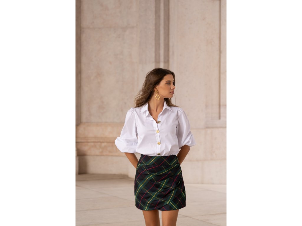 Dámská blůzka portugalské značky Sole s tříčtvrtečným rukávem. Halenka má jednořadé knoflíkové zapínání a mírně volánkovitý rukáv. Působí velice žensky a elegantně, perfektně padne ke kalhotům i pouzdrovým sukním. Zlaté knoflíky přidávají na luxusním a čistém vzhledu.