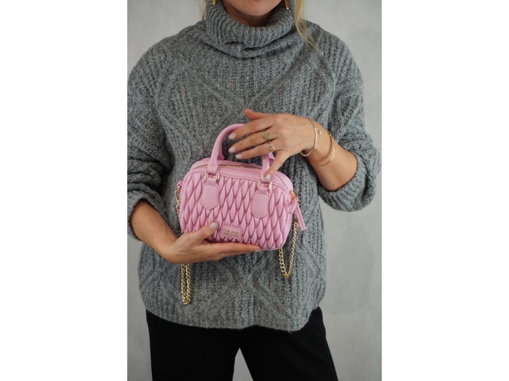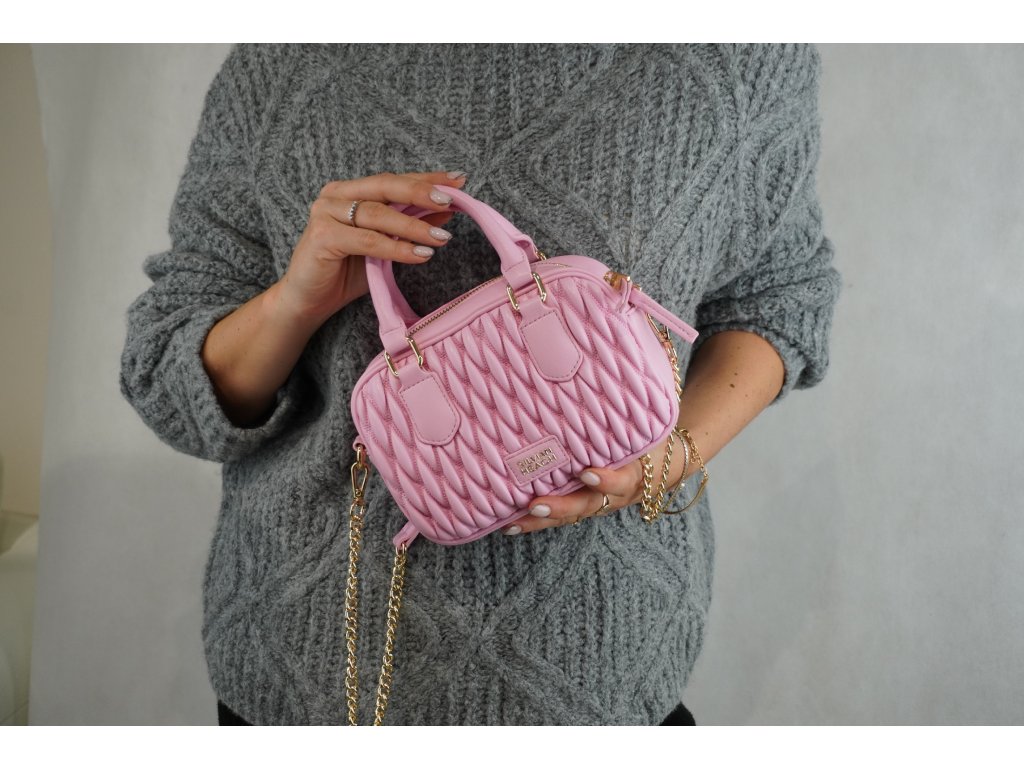 Dámská kabelka Silvian Heach ve světle růžové barvě. Kabelka má hranatý tvar, má jednu centrální přihrádku uzavíratelnou na zip. Ke kabelce je i dlouhý řetízek, takže ji můžete pohodlně nosit jako crossbody. Má nadčasový prošívaný design a kvalitní zpracování.