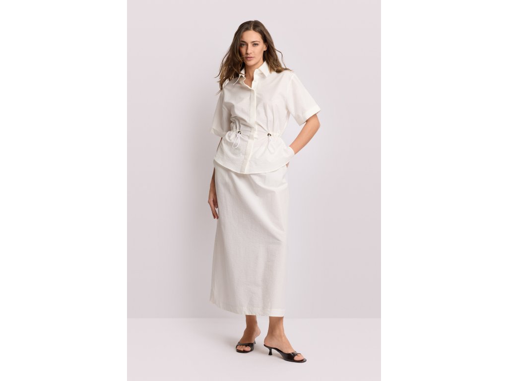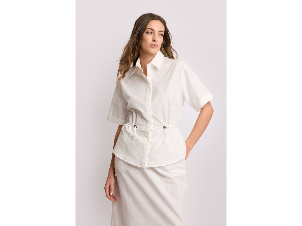 Košile Kocca z kolekce Pure Verve s krytými knoflíky. Siueta je definovaná elastickým pasem se stahovací šňůrkou. Klasický límec a krátké rukávy jsou zakončené manžetami. Ideální pro letní outfity v městském stylu, venkovní odpolední akce nebo volné letní večery.