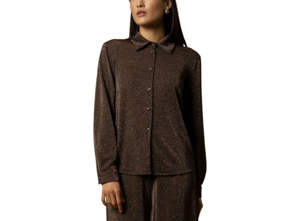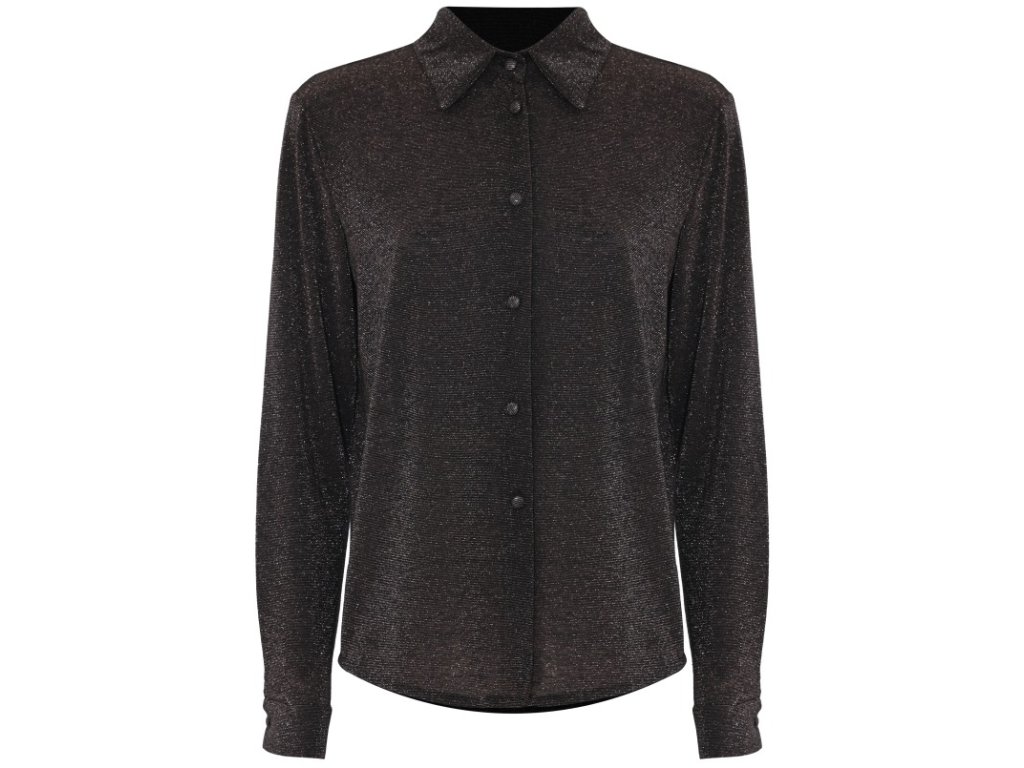 Dámská košile Kocca s jemnými knoflíčky a límečkem. Košile má dlouhý rukáv, knoflíčky sladěné ve stejné barvě, flitry, přiléhavé manžety a úzký límec. Volný střih. Materiálové složení: 45%polyester, 20%viskóza, 15%polyamid, 15% kov, 5%elastan.
