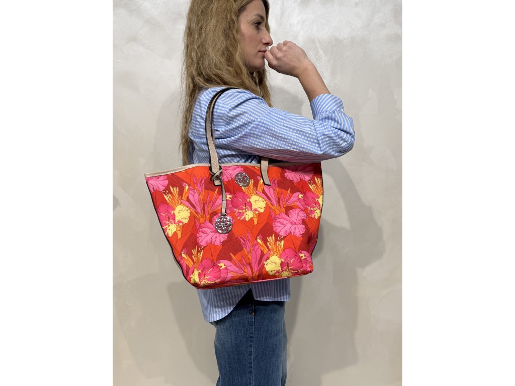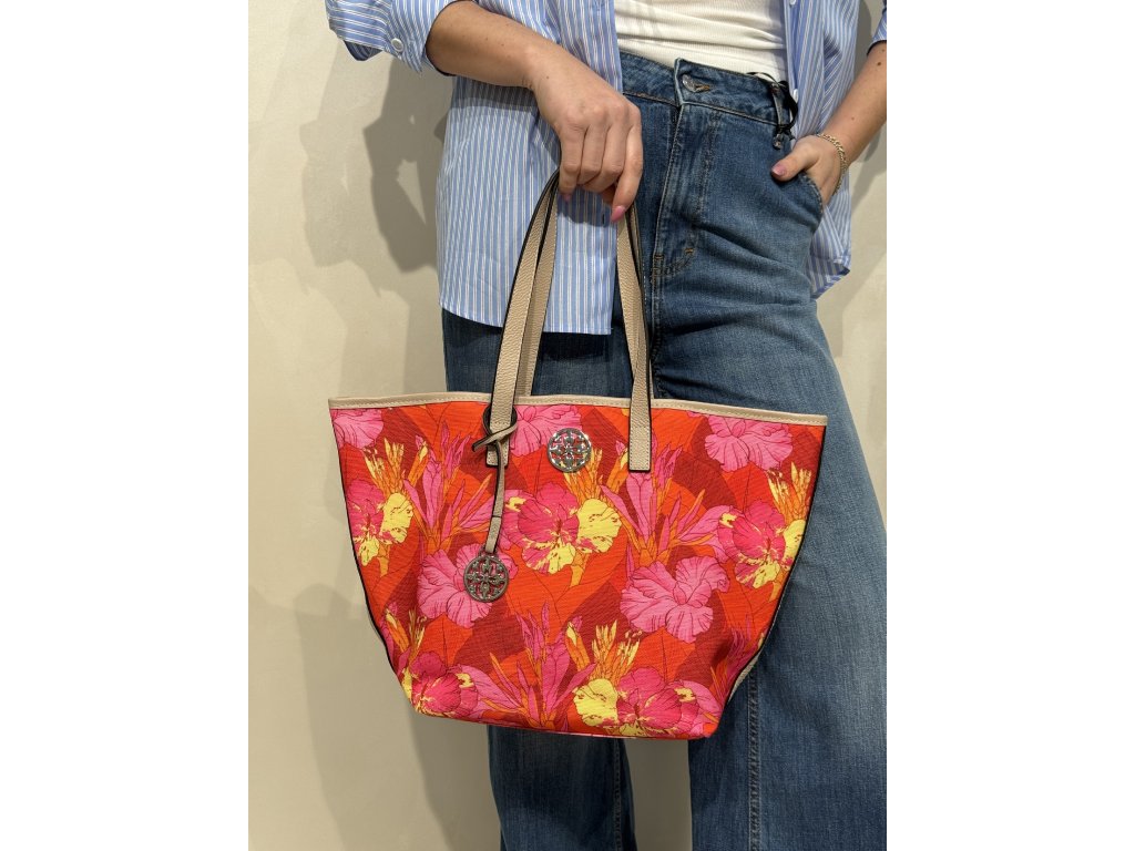 Dámská květovaná kabelka KTD klasického tvaru s delšími uchy, takže ji pohodlně vezmete na rameno. Shopperka, do které se vejde i formát A4, ideální je i na volné letní dny.