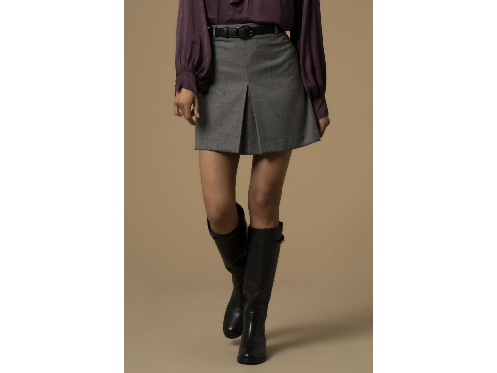 Tato sukně je ideální pro klasický, nadčasový každodenní vzhled. Má přední rozparek, boční kapsu s klopou a pásek s poutky.