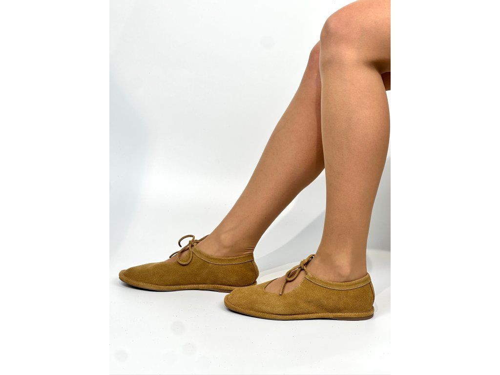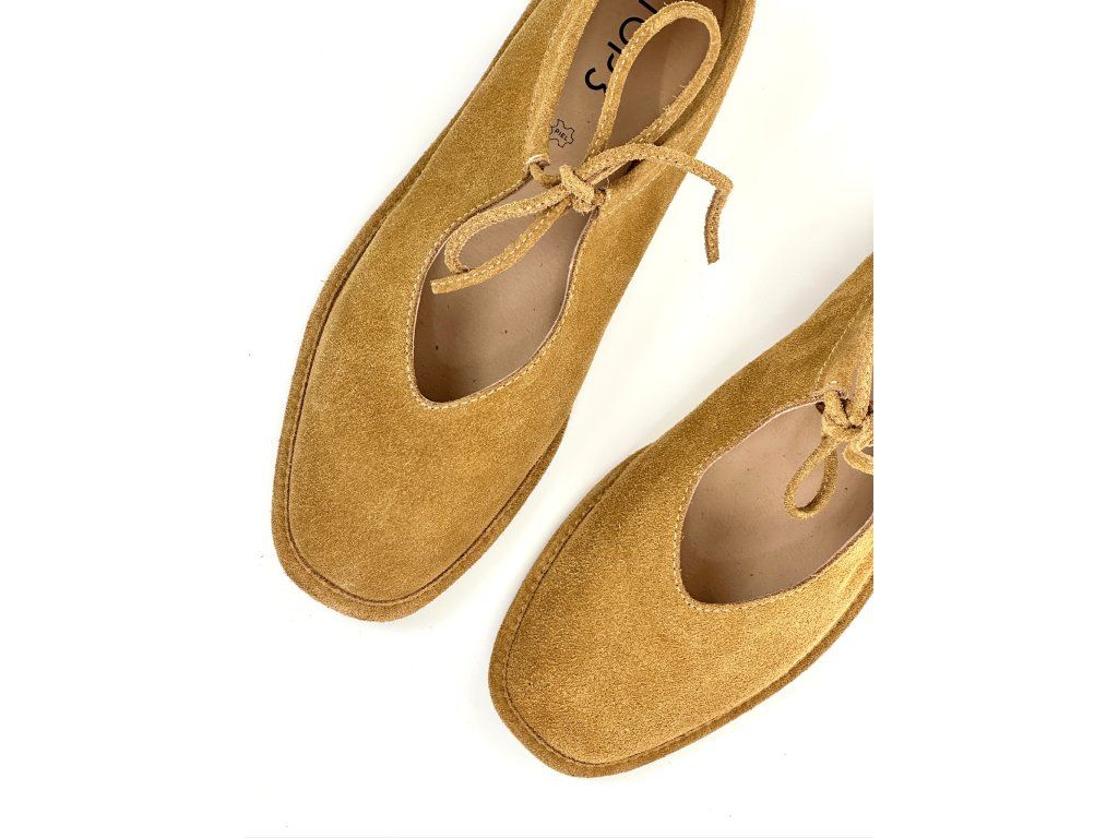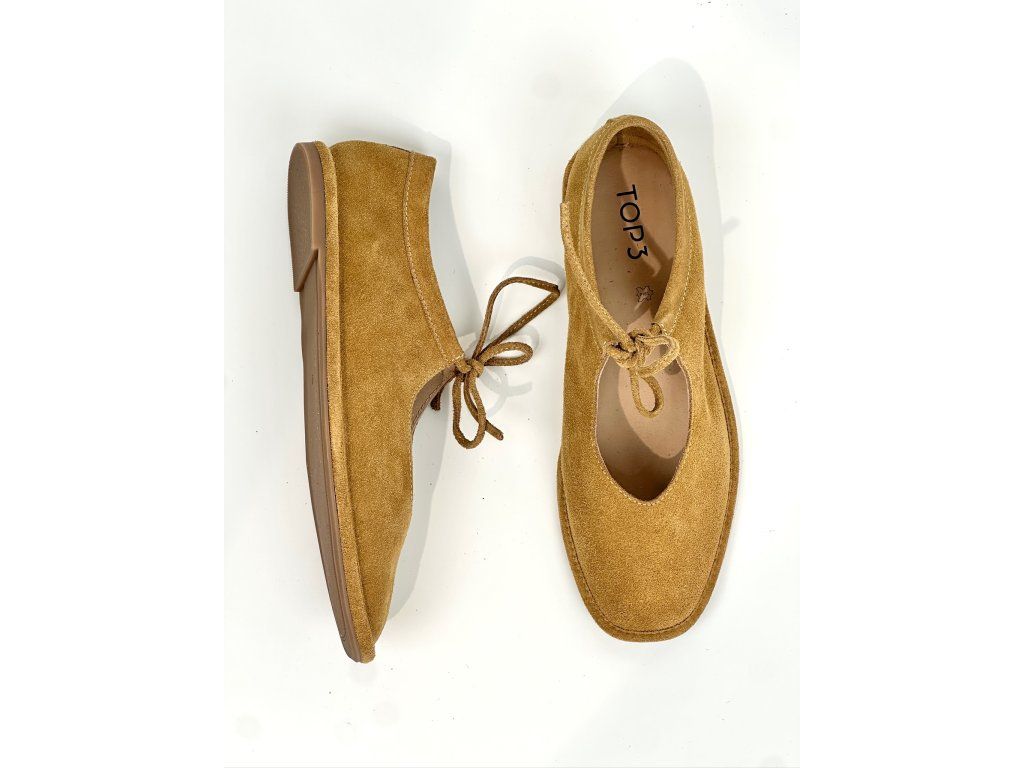 Dámské balerínky španělské značky Top3. Baleríny mají jednoduchý klasický design se širší zaoblenou špicí a vykrojením do V. Vyvýšené okraje kolem kotníku jsou doplněny šněrováním.
