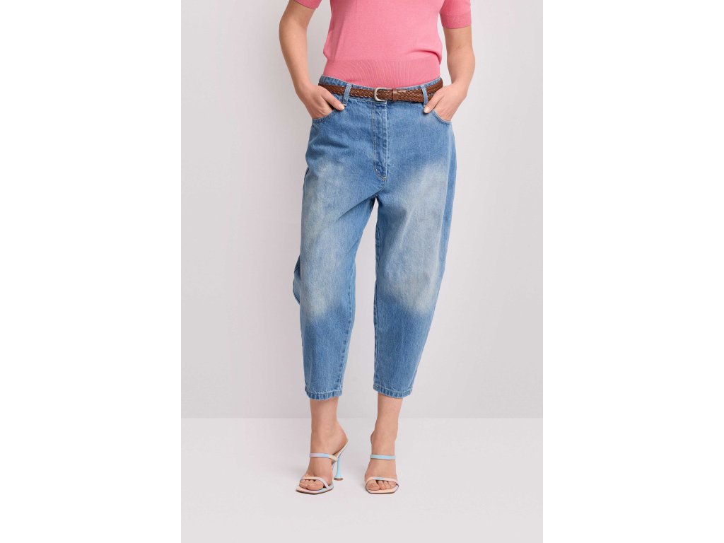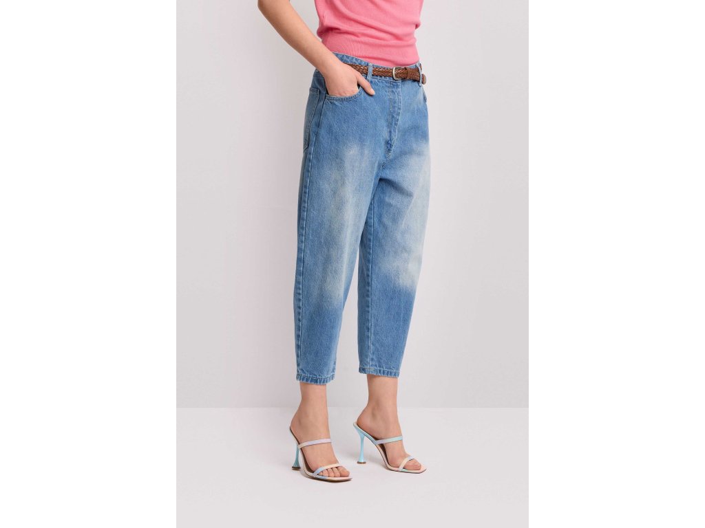 Všestranné bavlněné džínové kalhoty Kocca. Balónový střih s širokými nohavicemi, které se v dolní části mírně zužují.