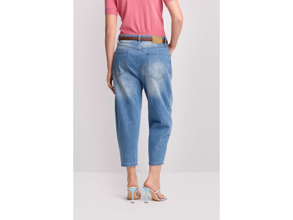 Zkrácená délka ke kotníkům. Pět kapes, poutka na opasek a nášivka s logem na zadní straně. Tyto džíny jsou vhodné pro ležérní denní outfit nebo pro elegantní večerní outfit v kombinaci se sandály na podpatku a sakem.