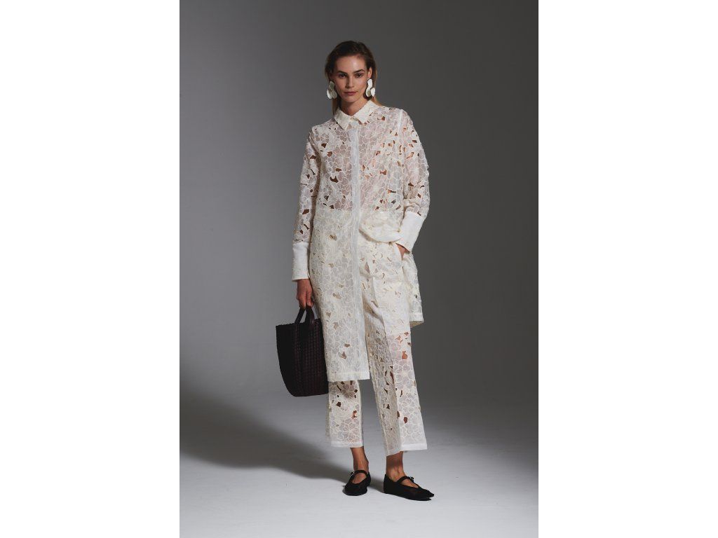 Dámské tříčtvrteční kalhoty Milva Mi s krajkou. Kalhoty mají rovný volný střih a podšívku s délkou ke kolenům. Perfektně je sladíte s topem se stejným motivem, nebo se sakem či košilí. Krajkový design zcela definuje eleganci a jemnost střihu a zároveň dodává outfitu punc luxusu a nadčasové estetiky.