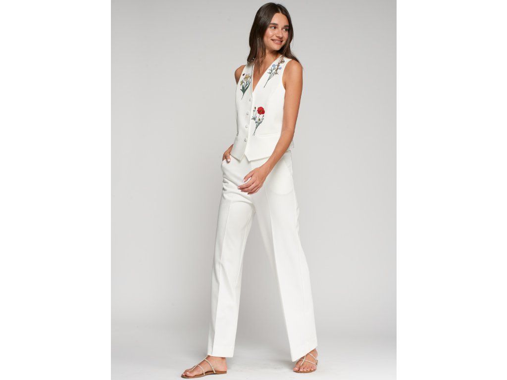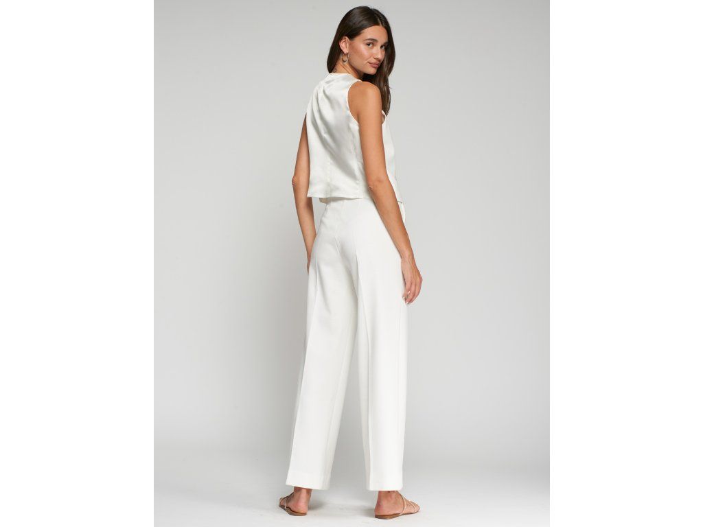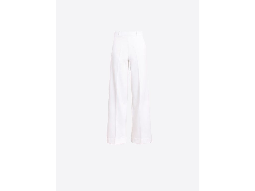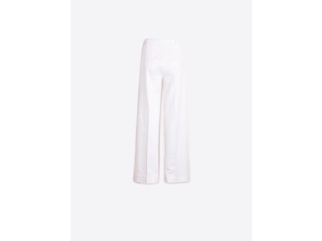 Bílé pletené kalhoty. Pas s poutky na opasek. Modelka měří 1,80 cm a má na sobě velikost 38/S.