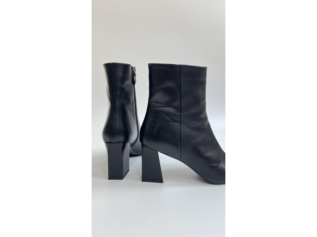 Dámské kotníčkové boty italského výrobce Chimar. Jsou vyrobeny z jemné hladké strukturované kůže, mají klasický střih se zaoblenou, mírně zůženou špičkou a vysoký bloková podpatek. Zapínání: zip na vnitřní boční straně obuvi. Výška podpatku je 80 mm. Pokud chcete vystoupit z davu, no zároveň si potrpíte na komfotní a kvalitní obuv, tyto kotníčkové boty Vám v šatníku nesmí chybět.
