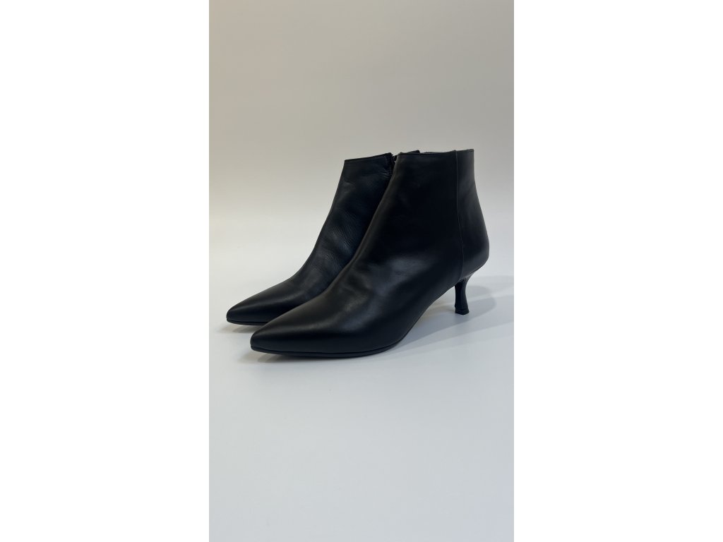 Dámské kotníčkové boty italského výrobce Chimar - řemeslná malá výroba přímo v srdci Itálie. Obuv je vyrobena z jemné hladké kůže. Má špičatý tvar, který dodá Vašemu looku potřebnou eleganci, ale zároveň zachovává komfort při celodenním nošení. Kotníčková obuv má středně vysoký, podsazený jehlový podpatek o výšce cca 6 cm. Zapínání: zip z boční vnitřní strany obuvi.