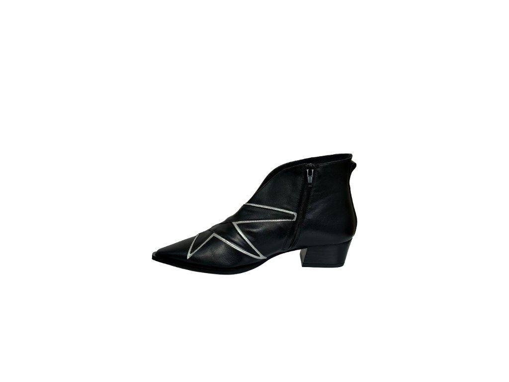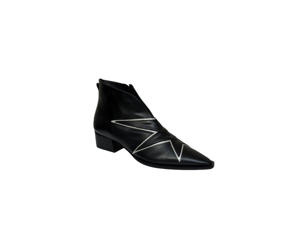 Obuv má jemné elegantní vykrojení v oblasti nártu a stříbrné prošití, které vytváří obrazec hvězdy.