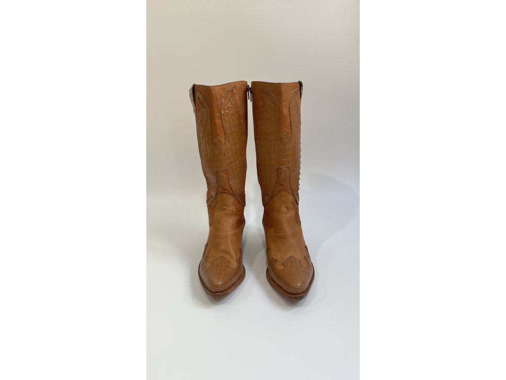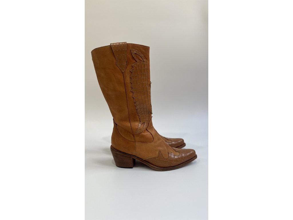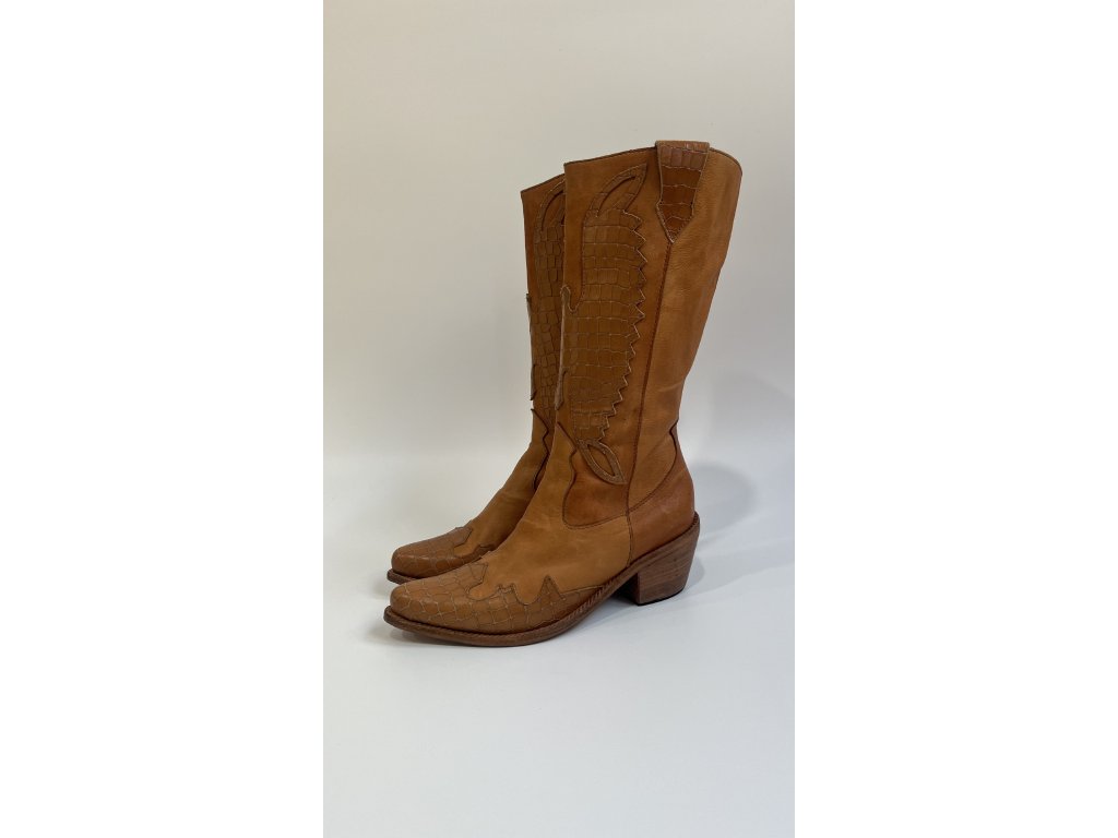 Dámské kovbojky Toscana - model Valencia. Tyto krásné ručně vyráběné kozačky v kovbojském stylu jsou dělané přímo na míru pro Toscanu. Handmade kousek vyráběný v Argentině z jemné, vysoce kvalitně spracované hladké kůže s detaily s krokodýlím vzorkem. Precizní práce a jedinečný kousek, který bude ve Vašem botníku zářit a Vy budete díky němu ikonou.