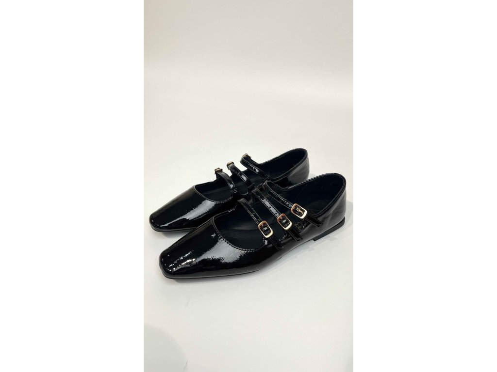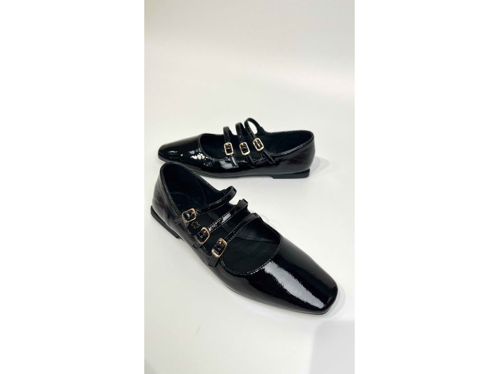 Dámské lakované balerínky značky Top3 se třemi řemínky přes nárt.. Baleríny jsou vyrobeny z jemné hladké kůže s lakovaným povrchem. Délku řemínku přes nárt si můžete libovolně upravovat, abyste docílily co největšího pohodlí. Boty mají čtvercovou špici a mírný blokový podpatek. Skvěle doplní Váš běžný outfit, poslouží Vám ale i jako alternativa na různé společenské akce, třeba do divadla nebo na večerní posezení s přáteli.