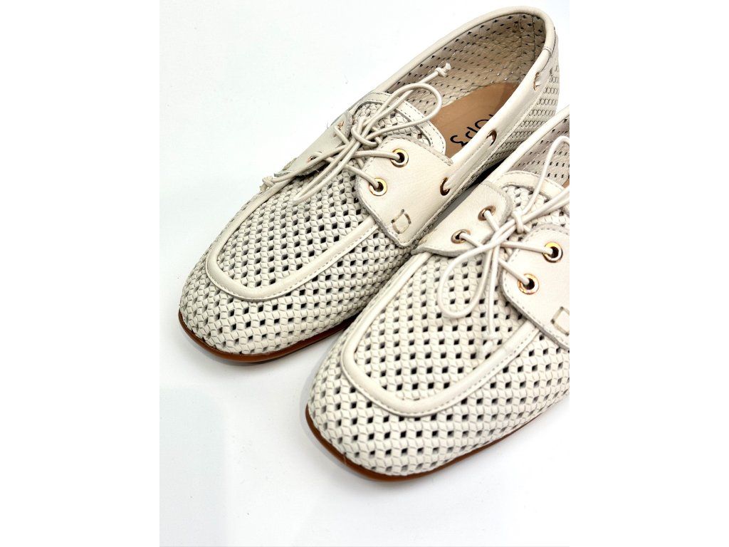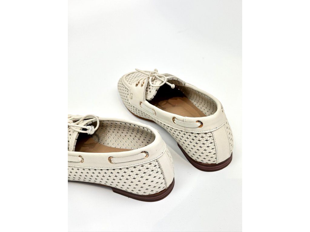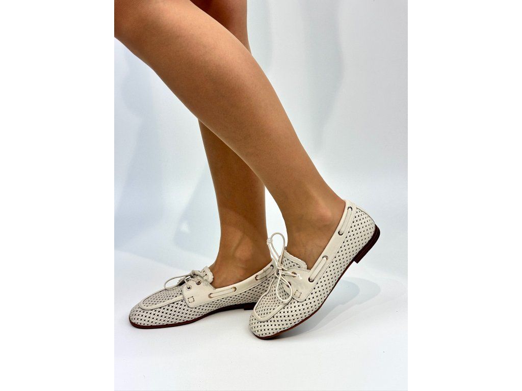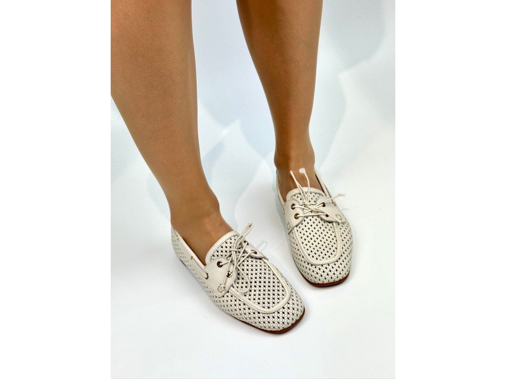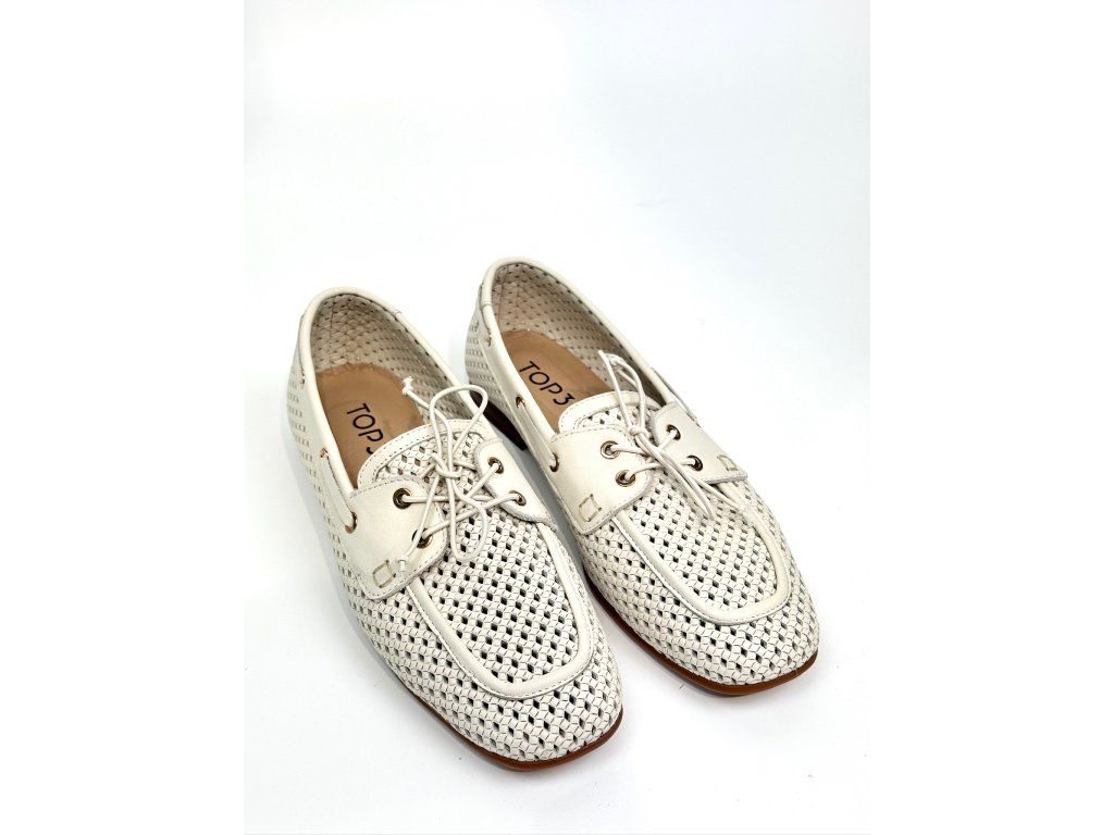 Dámské mokasíny španělské značky Top3 s čtvercovou špičkou a tkaničkami. Mokasínky mají perforovaný design a jsou vyrobené z jemné hladké kůže. Díky celokoženému provedení a kožené stélce jsou velmi měkké a pohodlné, ideální na každodenní nošení. Skvěle doplní jakýkoliv outfit - sportovně laděný i elegantní.