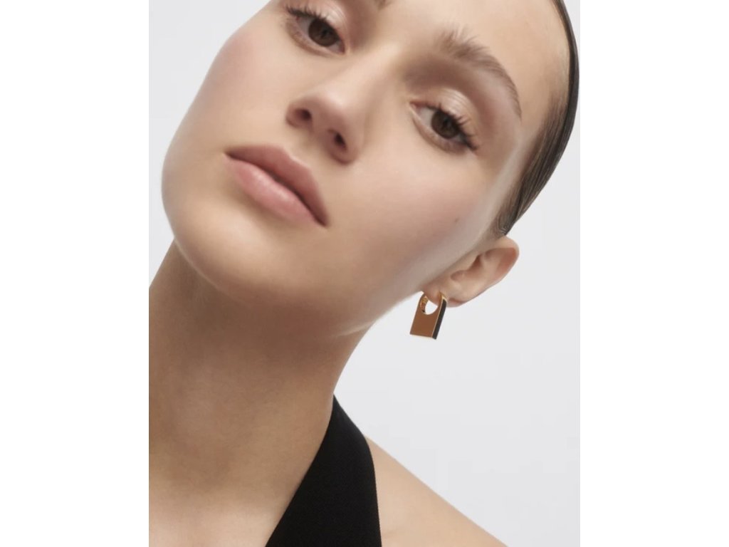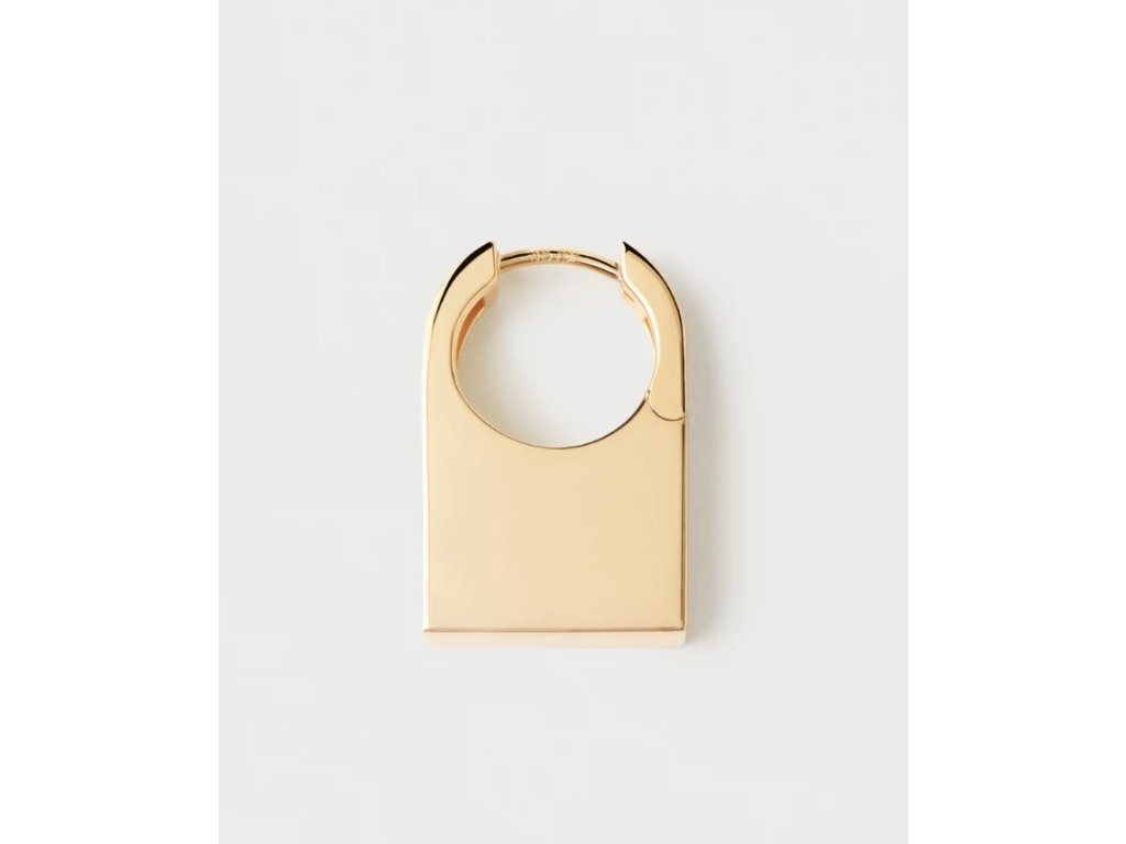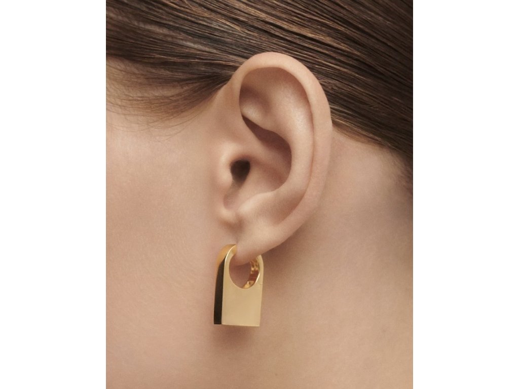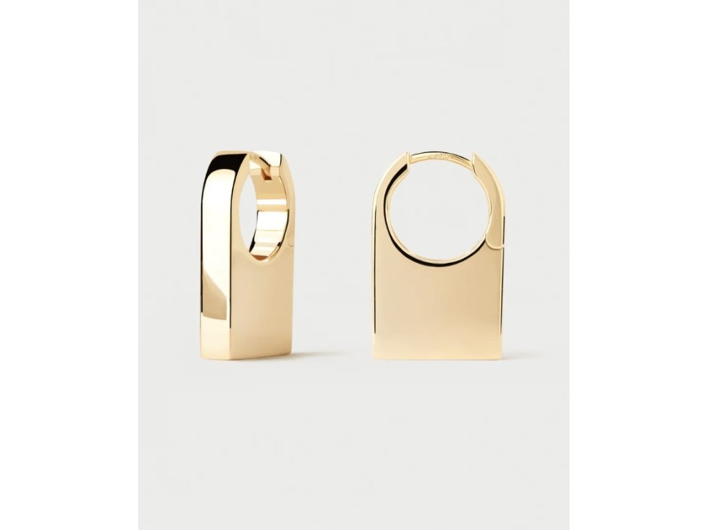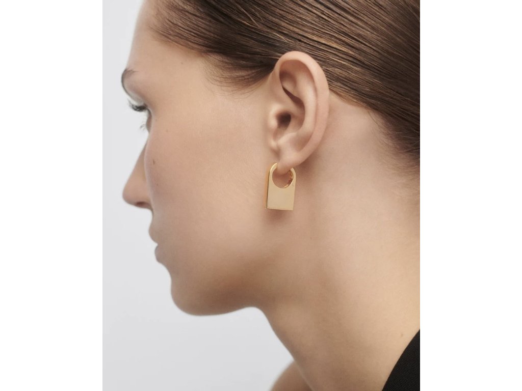 Výrazné pozlacené geometrické kruhové náušnice s protáhlým čtvercovým tvarem.