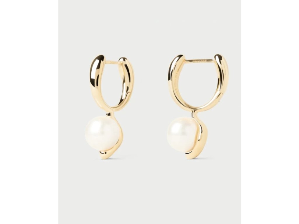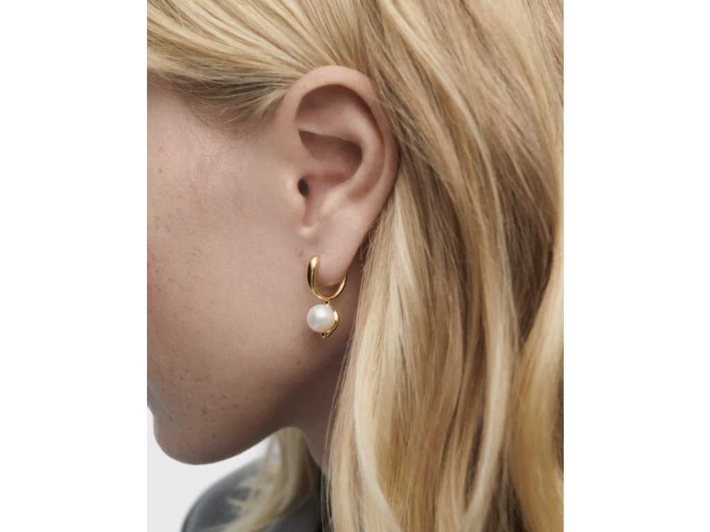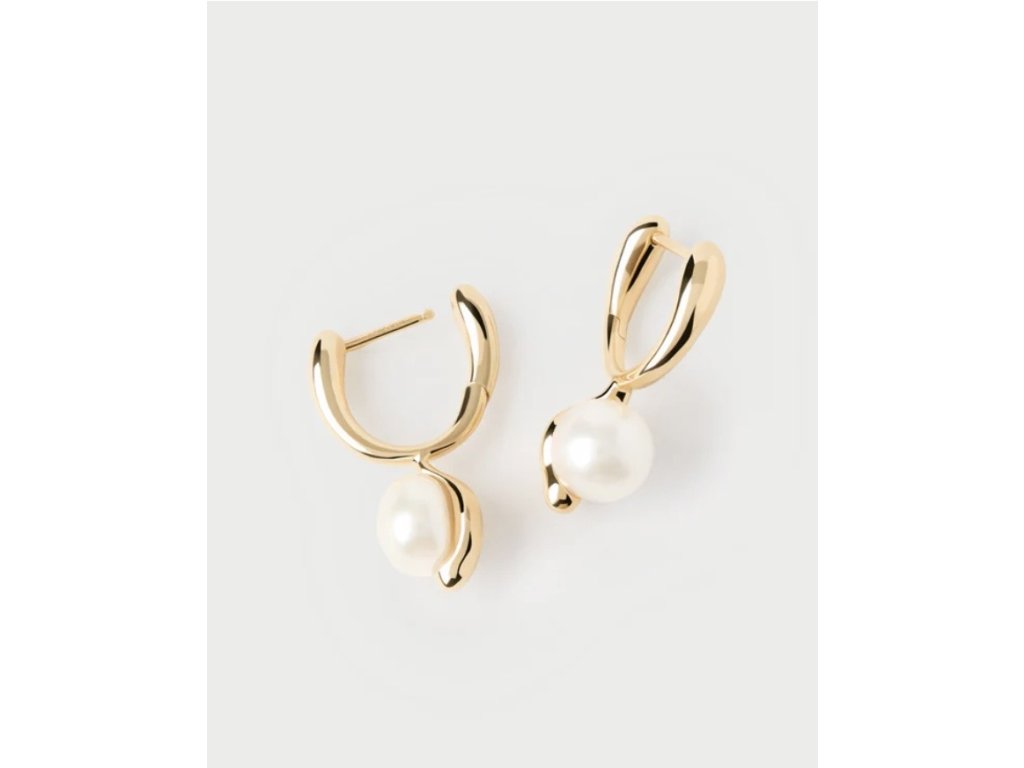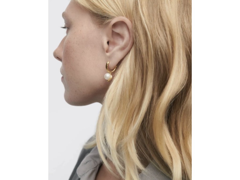 Moderní kruhové náušnice s přívěskem z kultivované sladkovodní perly.