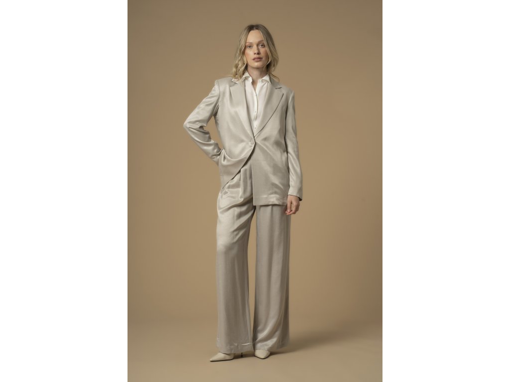 Minimalistický styl tohoto saka z kolekce Pure Verve je umocněn lesklou látkou, která mu dodává příjemný nádech elegance. Má zapínání na knoflíky a klopový límec.