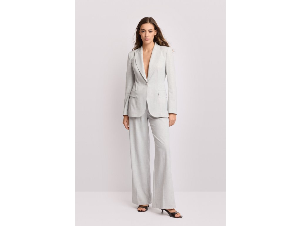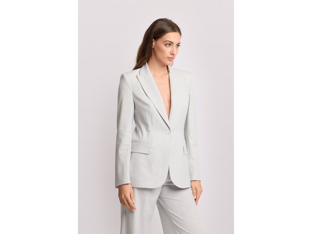 Jednořadé sako s širokými klopami a se zapínáním uprostřed s barevně sladěným knoflíkem. Saku vytváří strukturovanou siluetu s elegantními bočními klopami a zaoblenými okraji. Ideální do kanceláře nebo k rafinovaným outfitům.