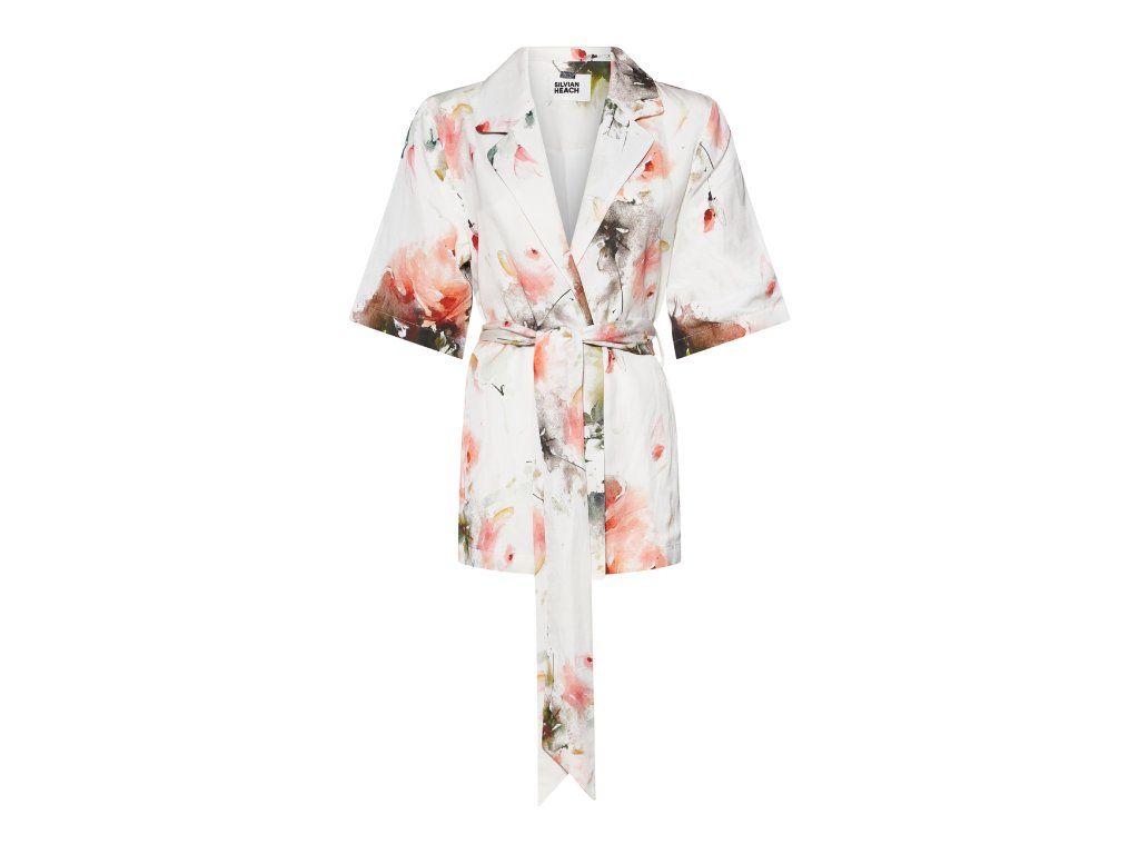 Dámské sako s výrazným a sofistikovaným stylem s uměleckým motivem, který mu dodává silný estetický nádech. Uzlový design pásku definuje harmonickou a plynulou strukturu, zatímco klopy vyvažují vzhled decentní elegancí. Model navržený tak, aby interpretoval osobitý a moderní styl s rafinovanou lehkostí.