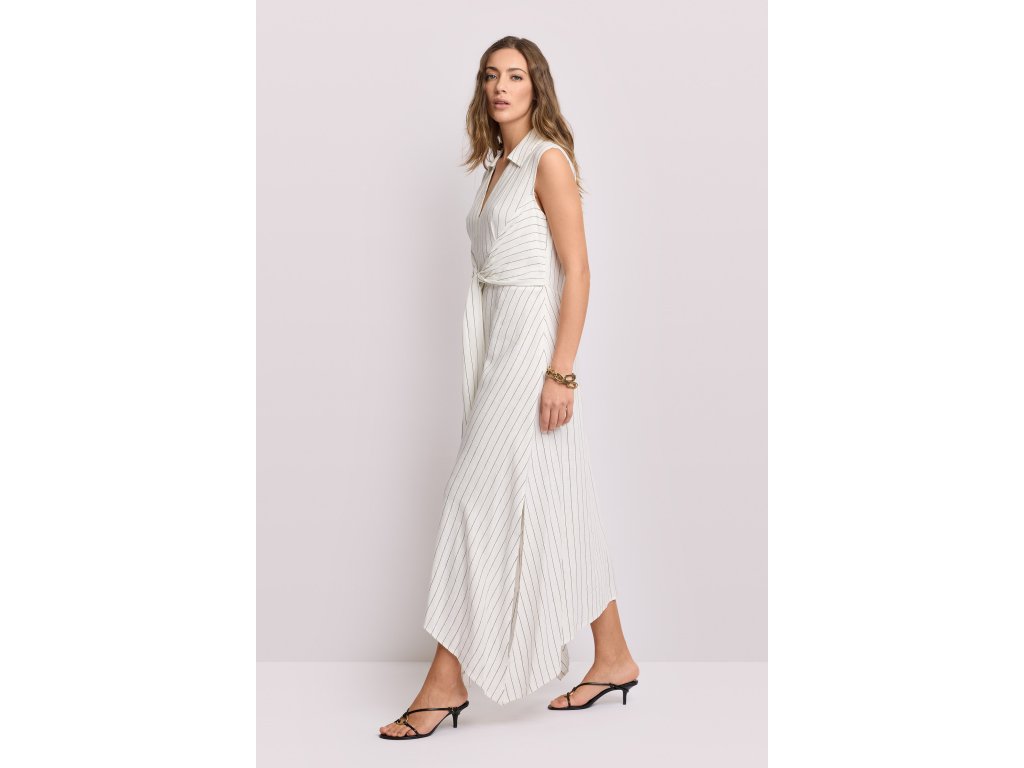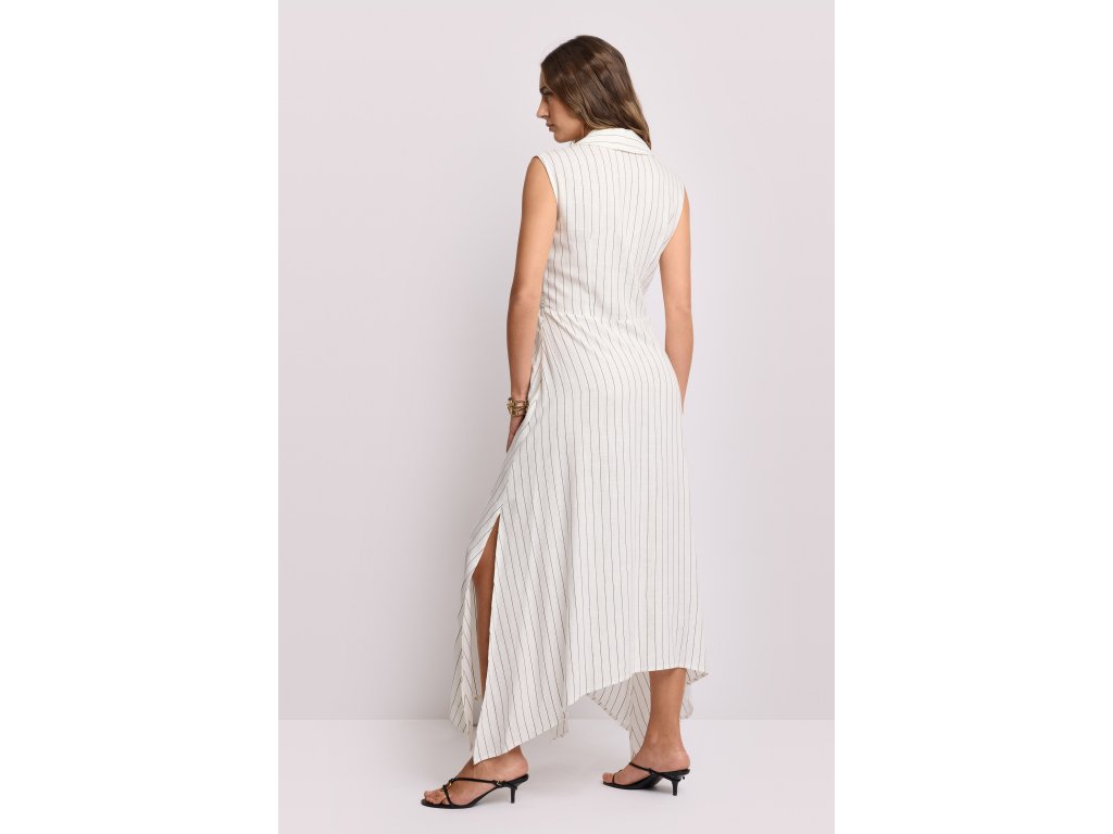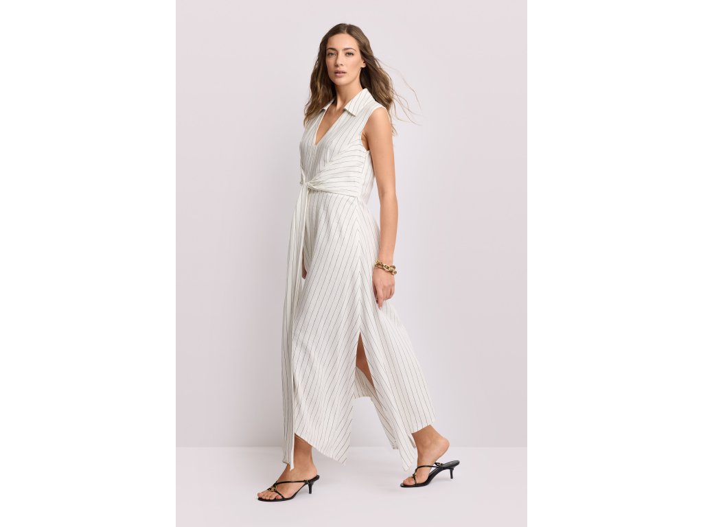 - Dlouhé šaty bez rukávů s elegantním košilovým límečkem a potiskem svislých pruhů