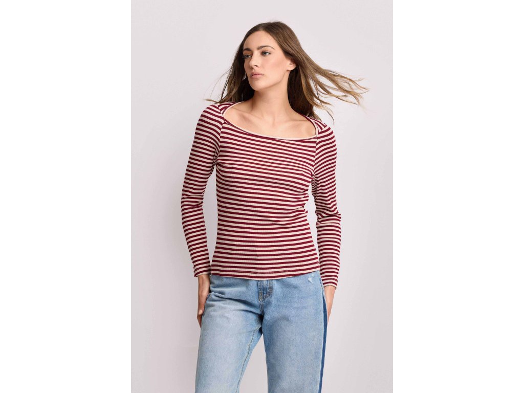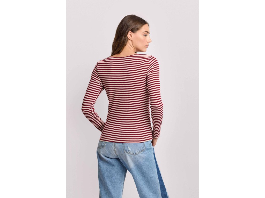 - Tričko s dlouhým rukávem a klasickým vzorem tenkých vodorovných pruhů v kontrastních barvách.