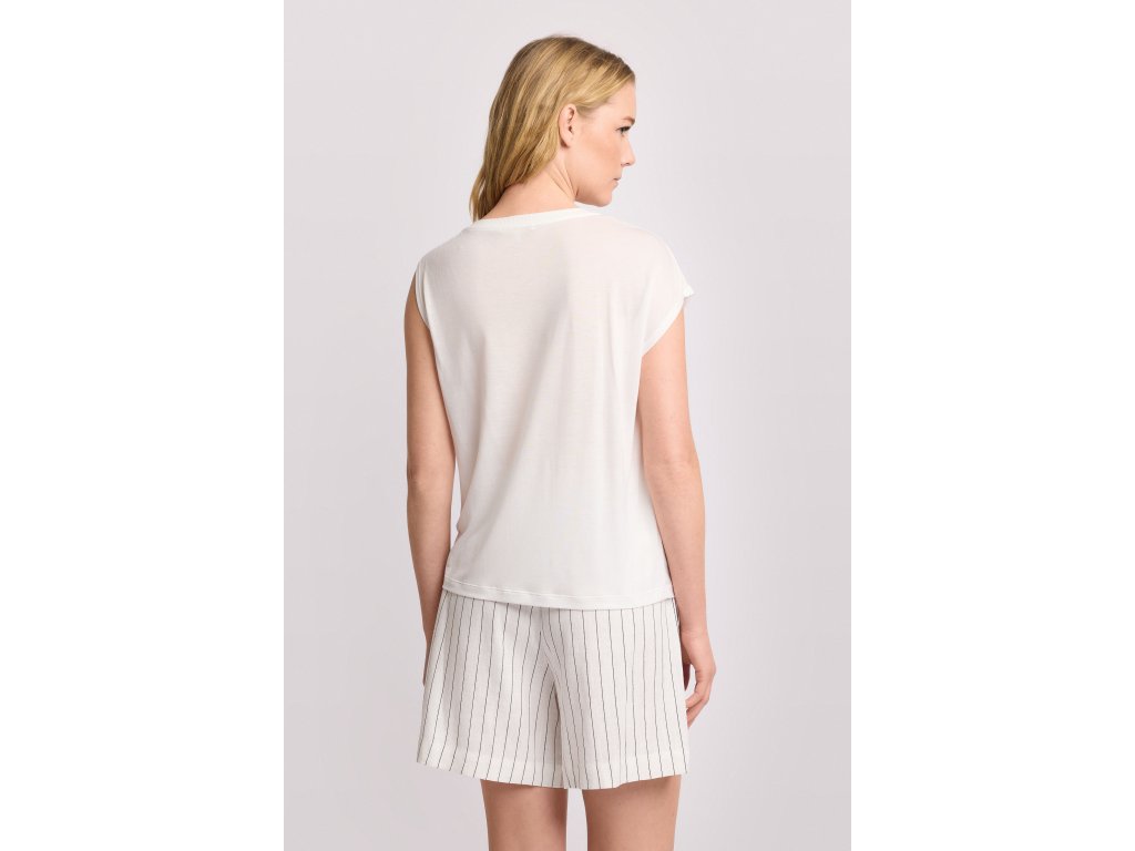 - Kulatý výstřih. Ideální pro každodenní městský vzhled v kombinaci s pruhovanými kraťasy; sofistikovaný zlatý detail je také ideální pro letní večerní akce nebo neformální ceremoniály.