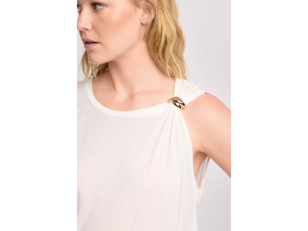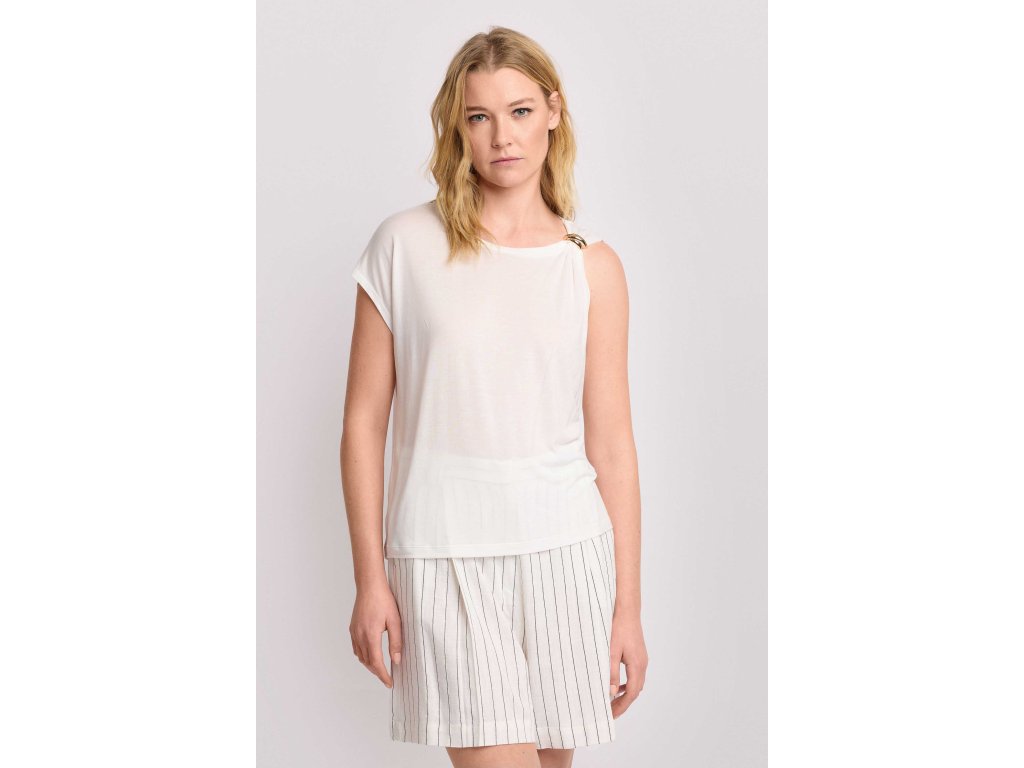- Tričko s krátkým rukávem, splývavým na pravé straně a tenkým ramínkem na levé straně.