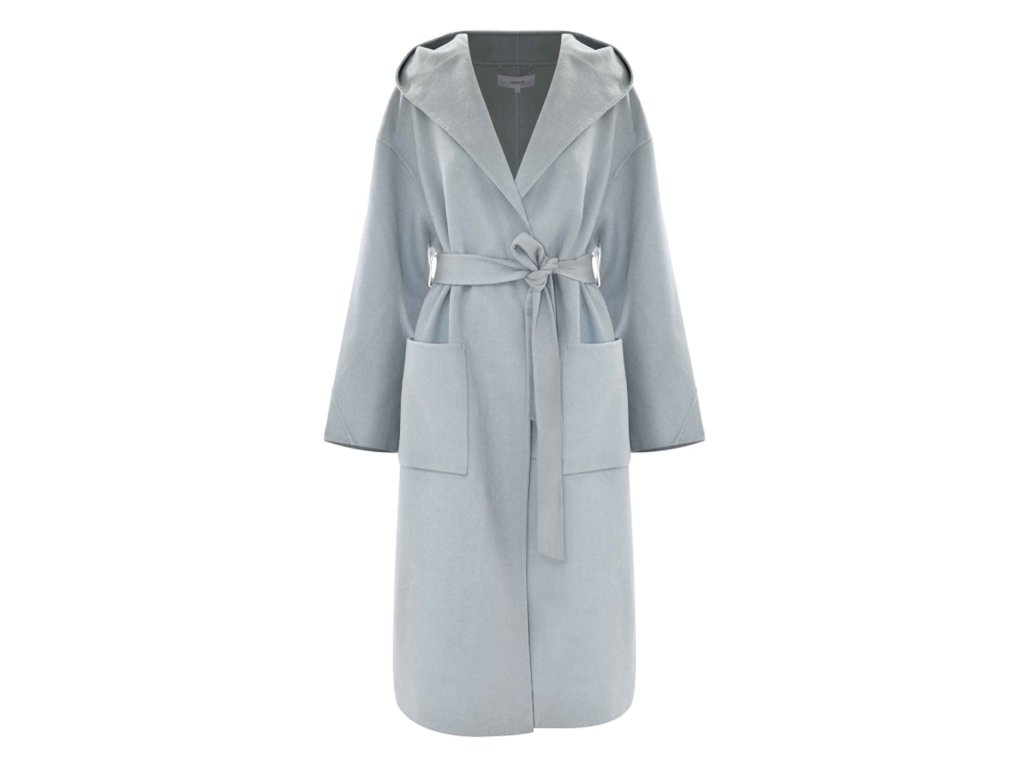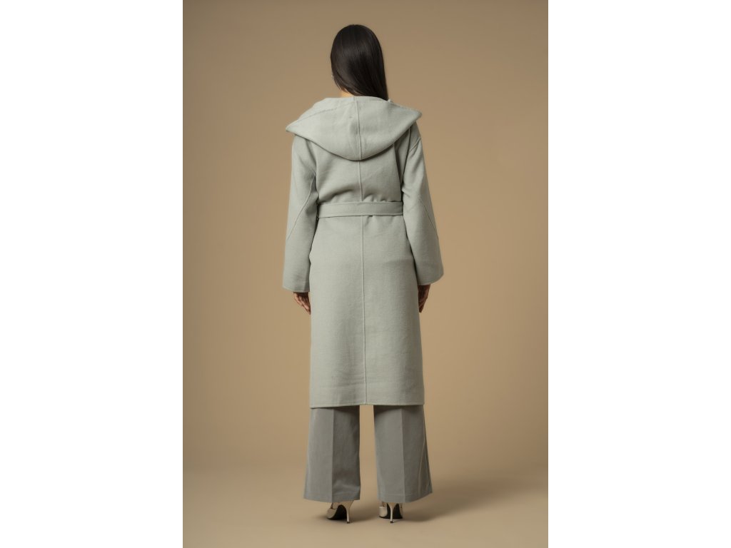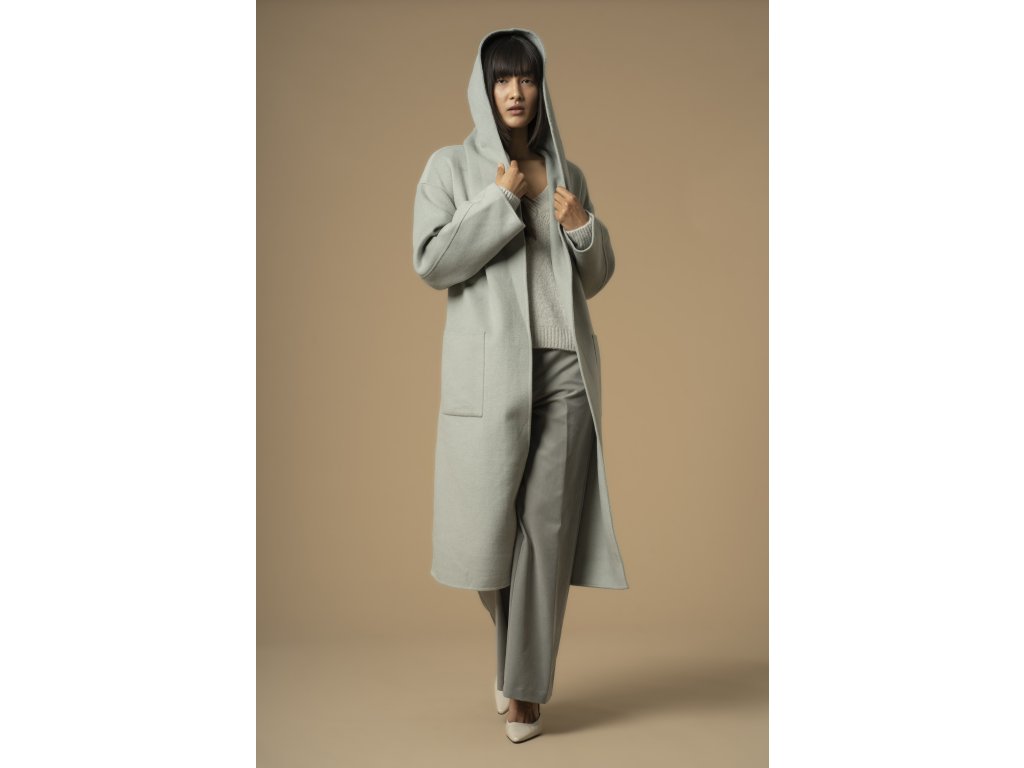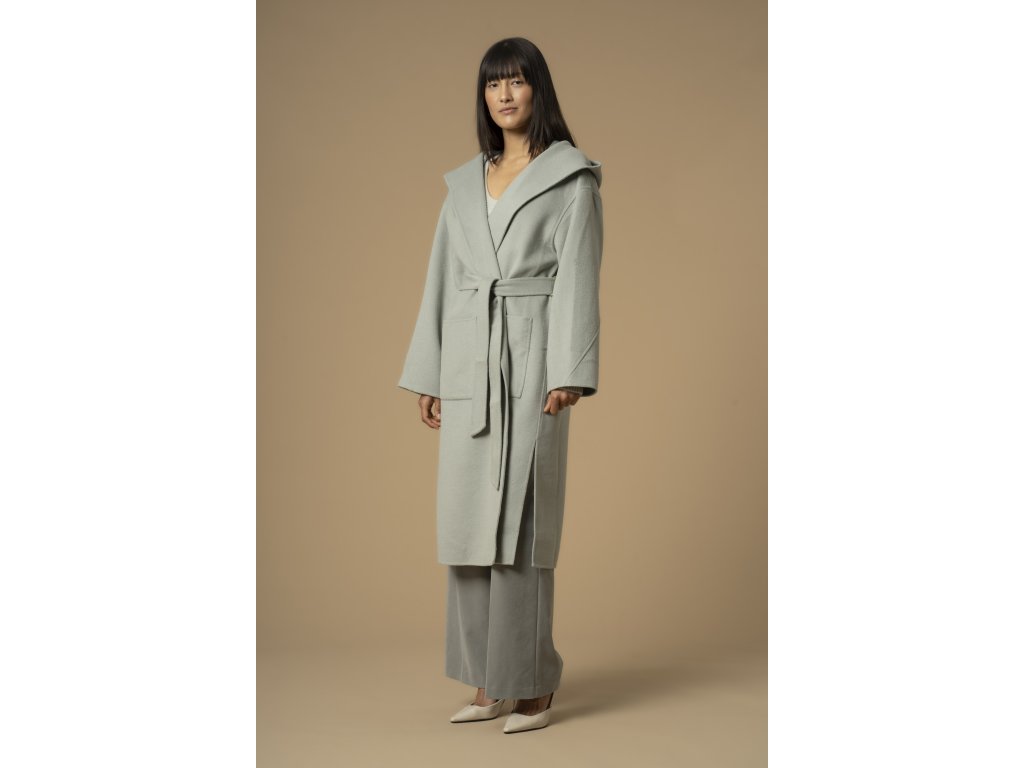 Tento kabát z kolekce Pure Verve se vyznačuje zavinovacím a měkkým střihem, má šálový límec a kapuci, boční kapsy a pásek v pase.