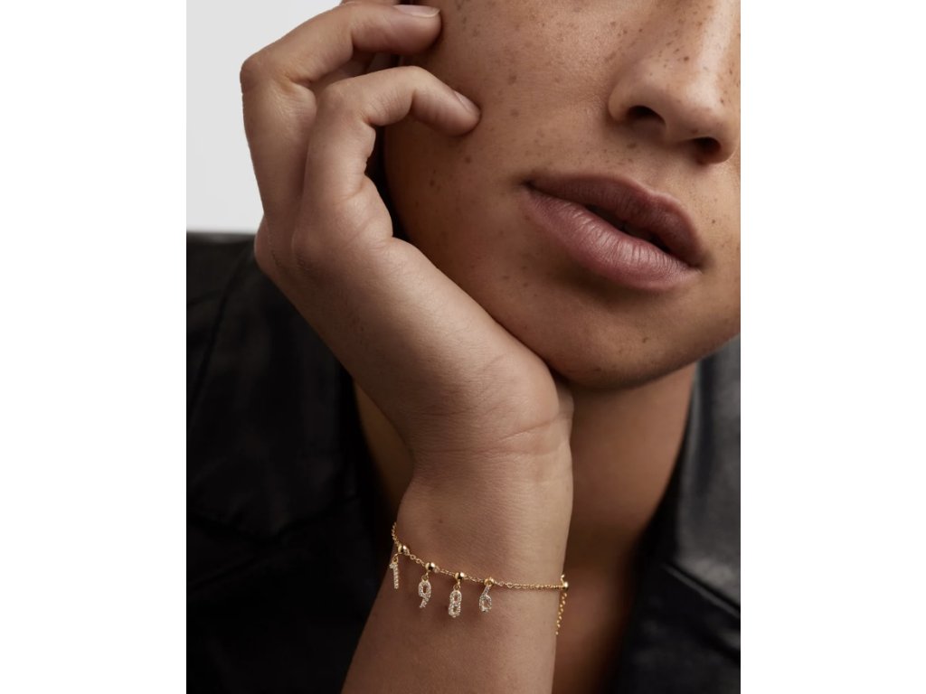 Dámský stříbrný přívěsek s pozlaceným povrchem a bílými zirkony. Přívěsek je skvělým doplňkem, který lze kombinovat s dalšími přívěsky a nosit je na náramku nebo náhrdelníku.
