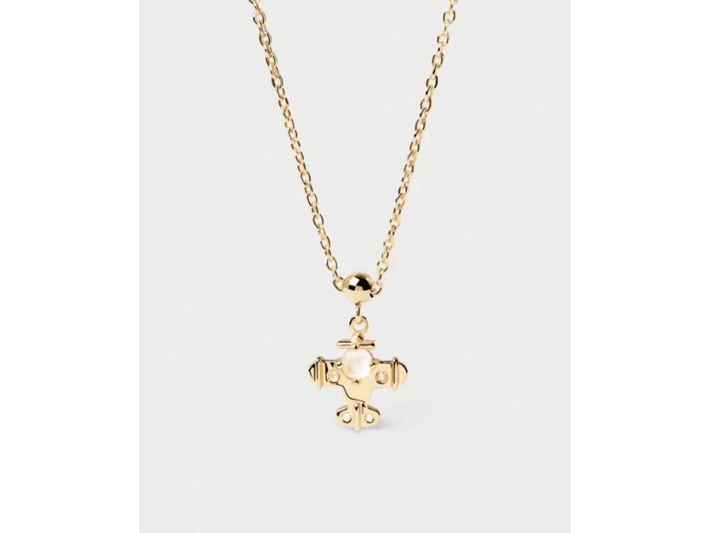 Pozlacený stříbrný přívěsek na náhrdelník nebo náramek s bílým zirkonem ve tvaru letadla.