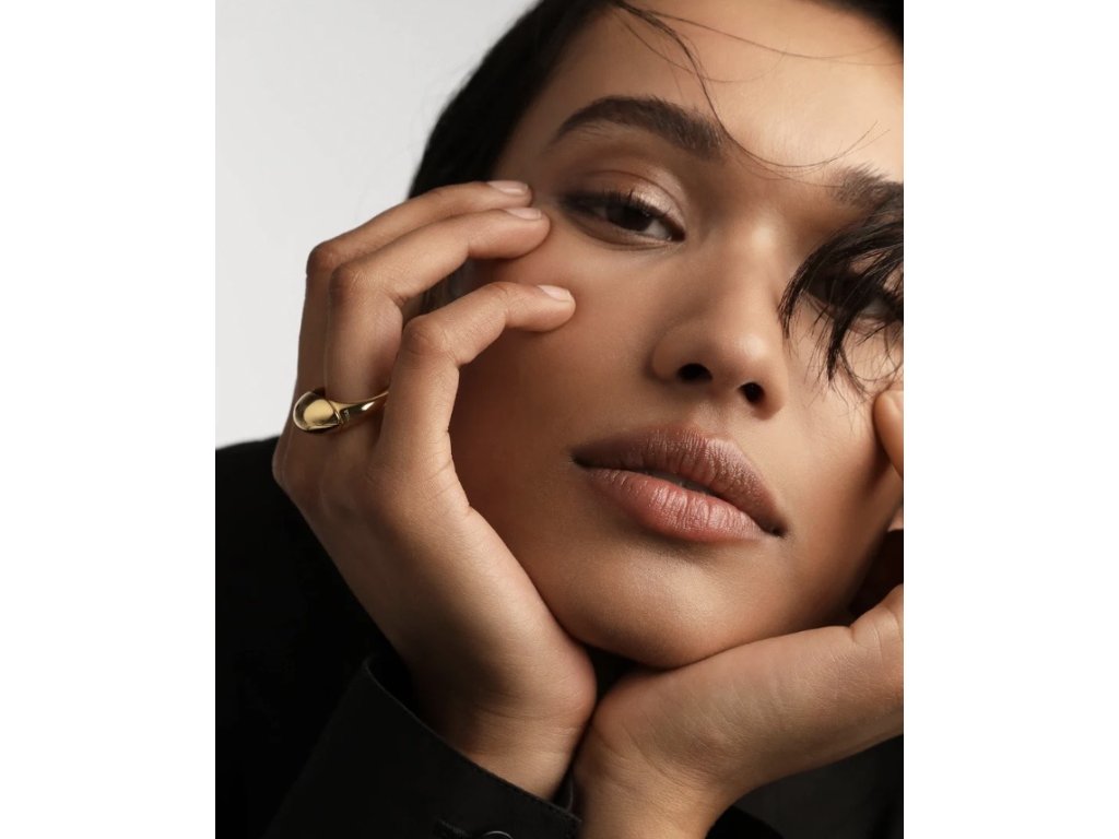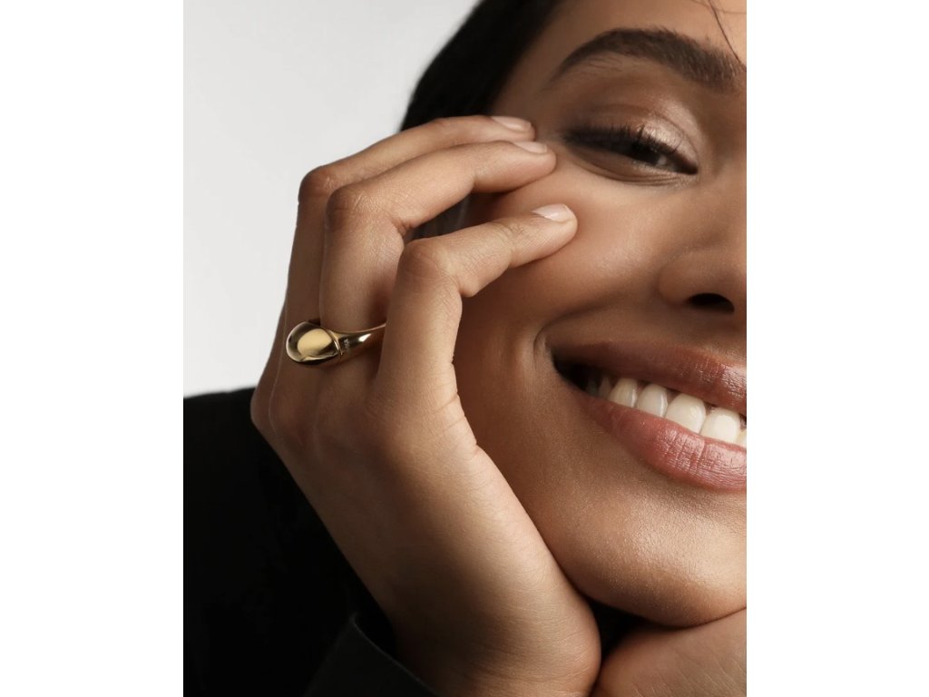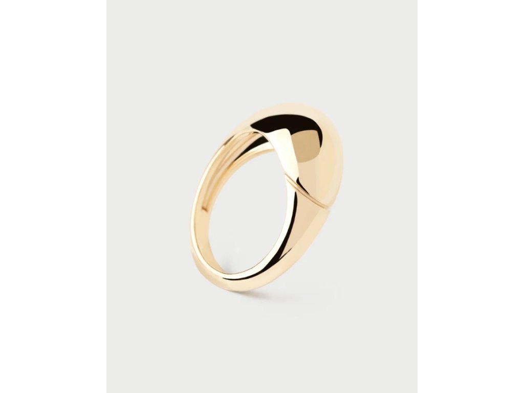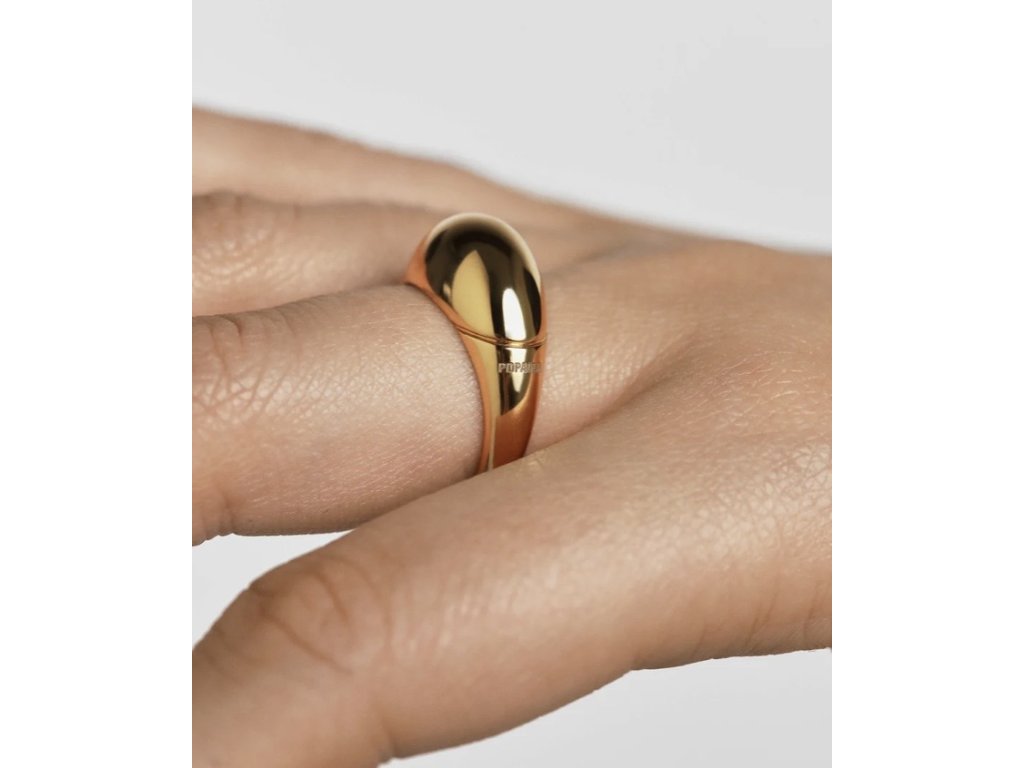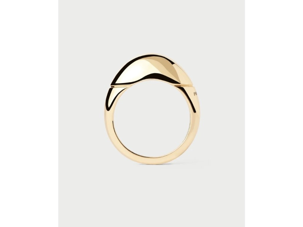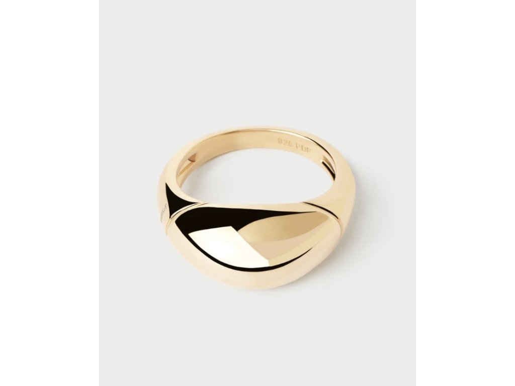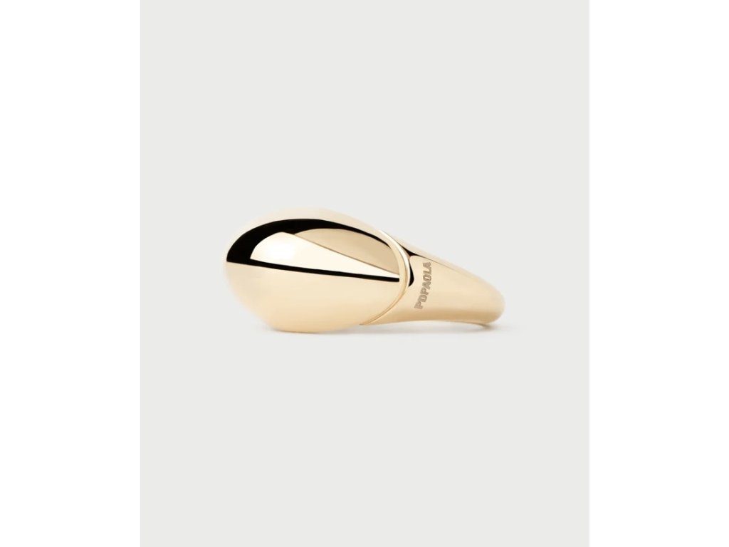 Pozlacený výrazný prsten s kopulí a robustním lemem.