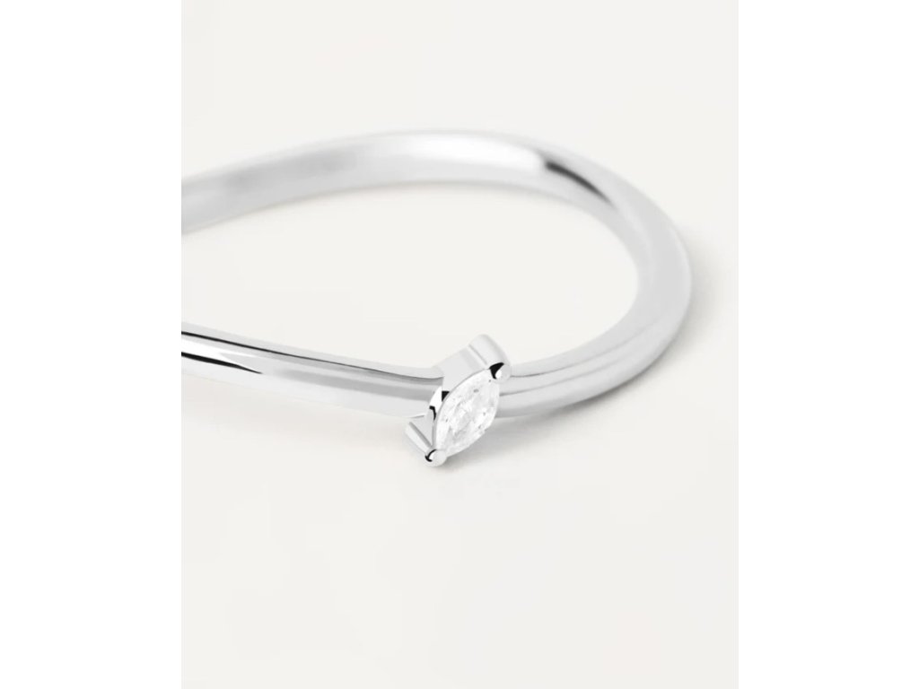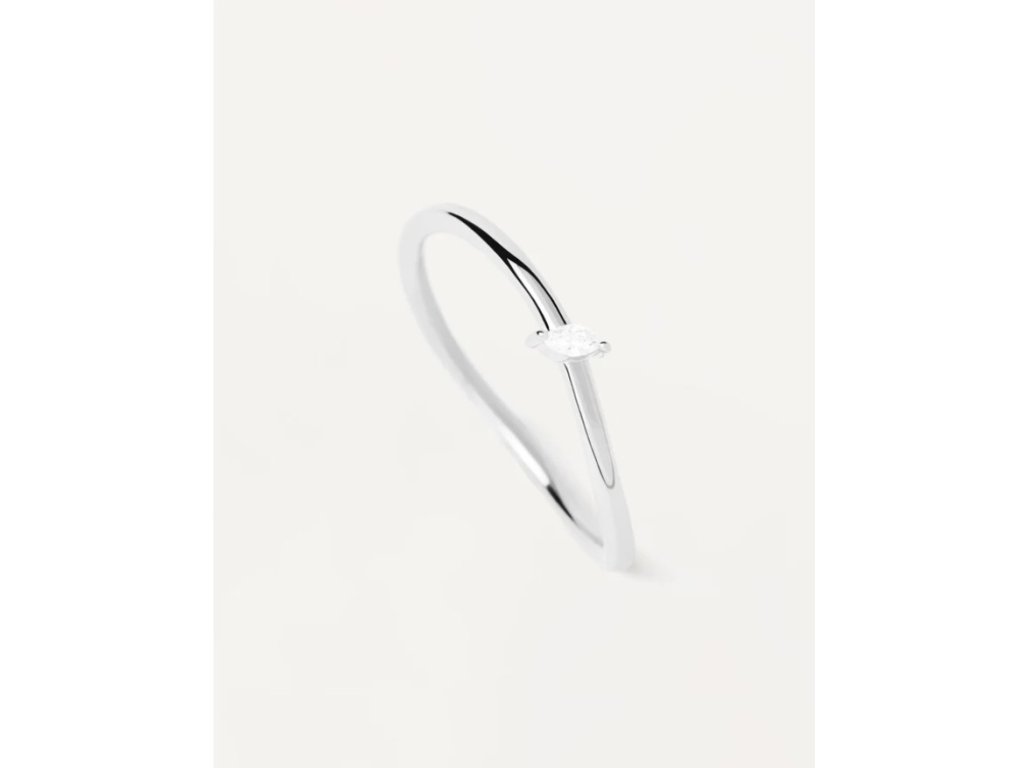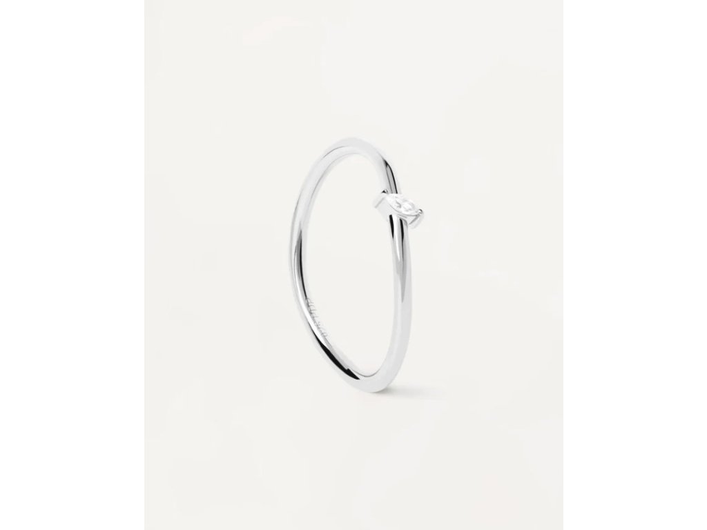 Stříbrný solitaire prsten s oválným bílým zirkonem.