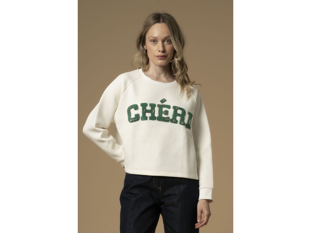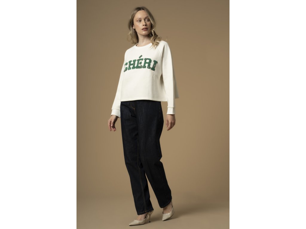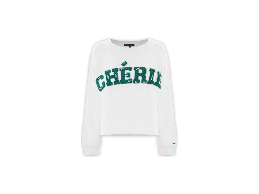 Tato mikina, ideální pro každodenní nošení, má na přední straně potisk s nápisem a třpytivé detaily. Má rovný, standardní střih a kulatý výstřih.
