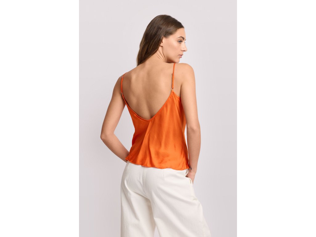 - Široký, hluboký výstřih do V vzadu s nastavitelnými tenkými ramínky.