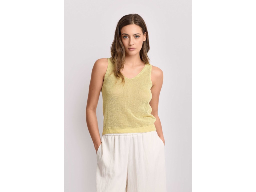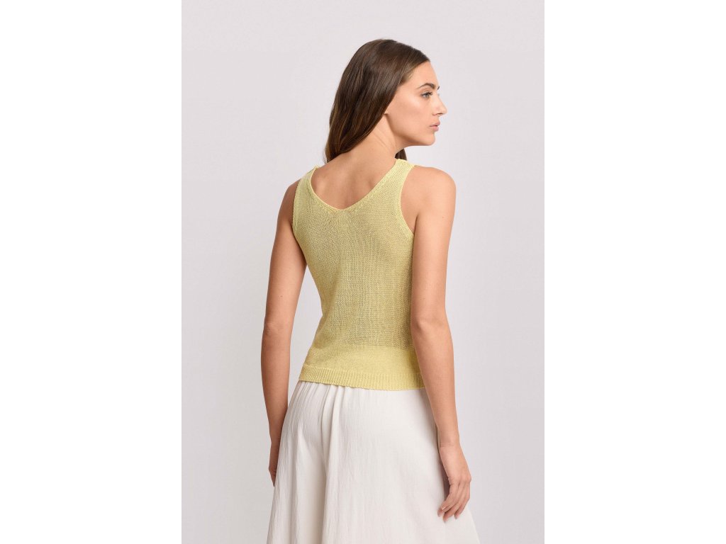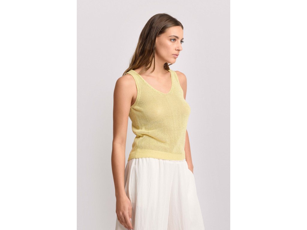 - Pletený top s jemným výstřihem do V, který zdůrazňuje dekolt.