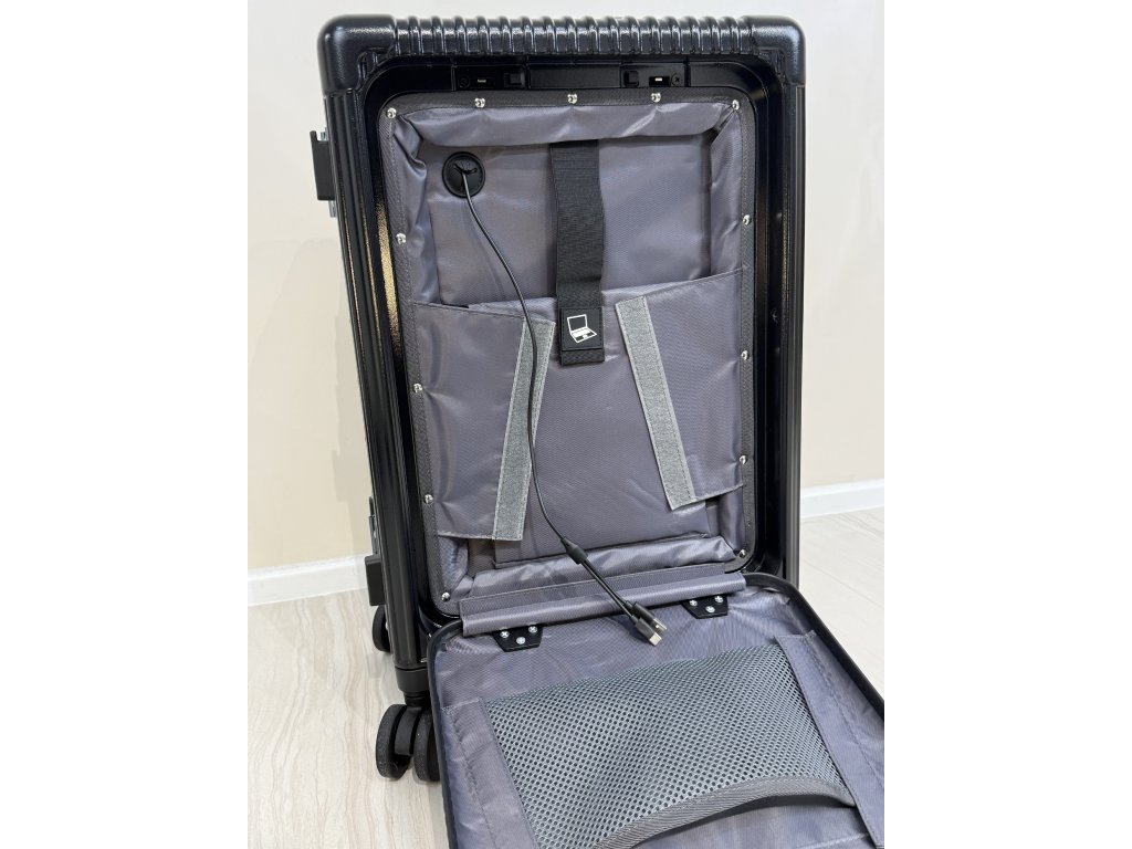 Kufr má zapínání na kovové panty, které jsou opatřeny TSA zámkem. V přední části kufru se také nachází další vyklápěcí přihrádka s úložným prostorem pro notebook a s přihrádkou i příslušenstvím na powerbanku. Přední přihrádka je také opatřena zámkem TSA s nastavitelnou číselnou kombinací.