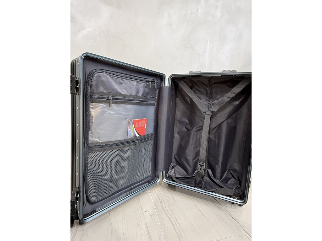 Kufr má klasické vnitřní uspořádání s několika přihrádkami na zip.