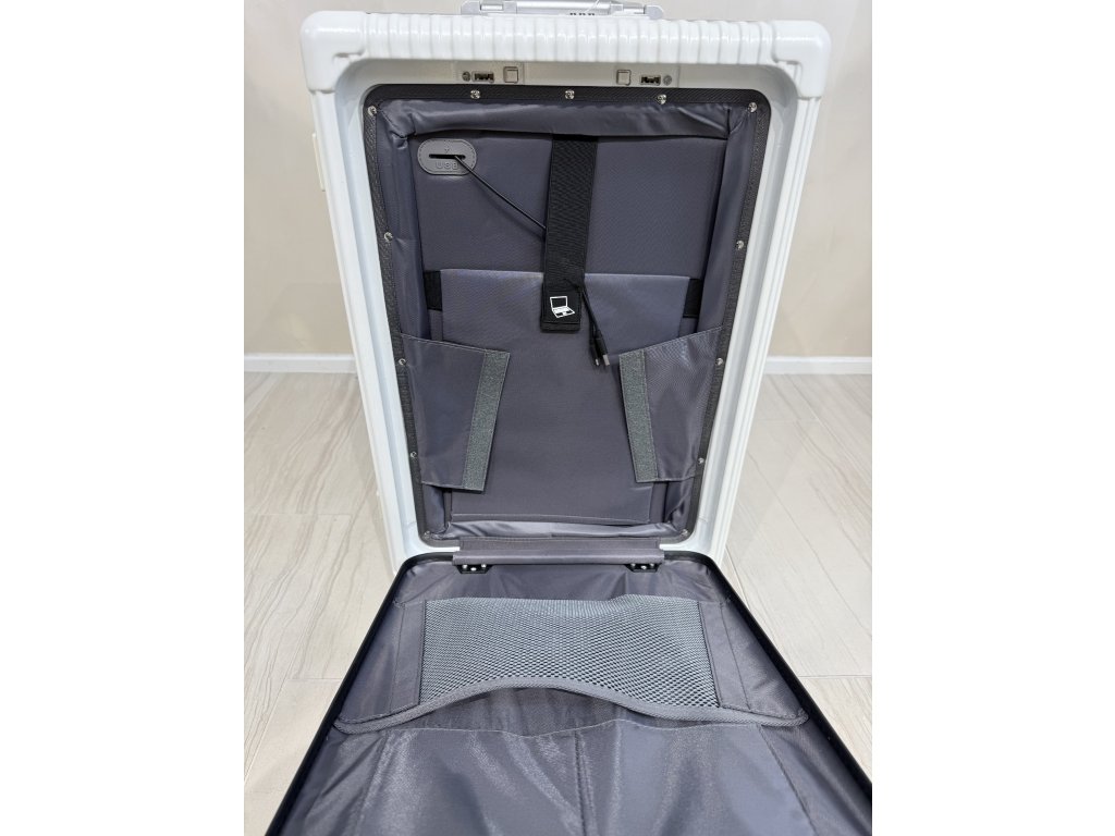 Kufr má zapínání na kovové panty, které jsou opatřeny TSA zámkem. V přední části kufru se také nachází další vyklápěcí přihrádka s úložným prostorem pro notebook a s přihrádkou i příslušenstvím na powerbanku. Přední přihrádka je také opatřena zámkem TSA s nastavitelnou číselnou kombinací.